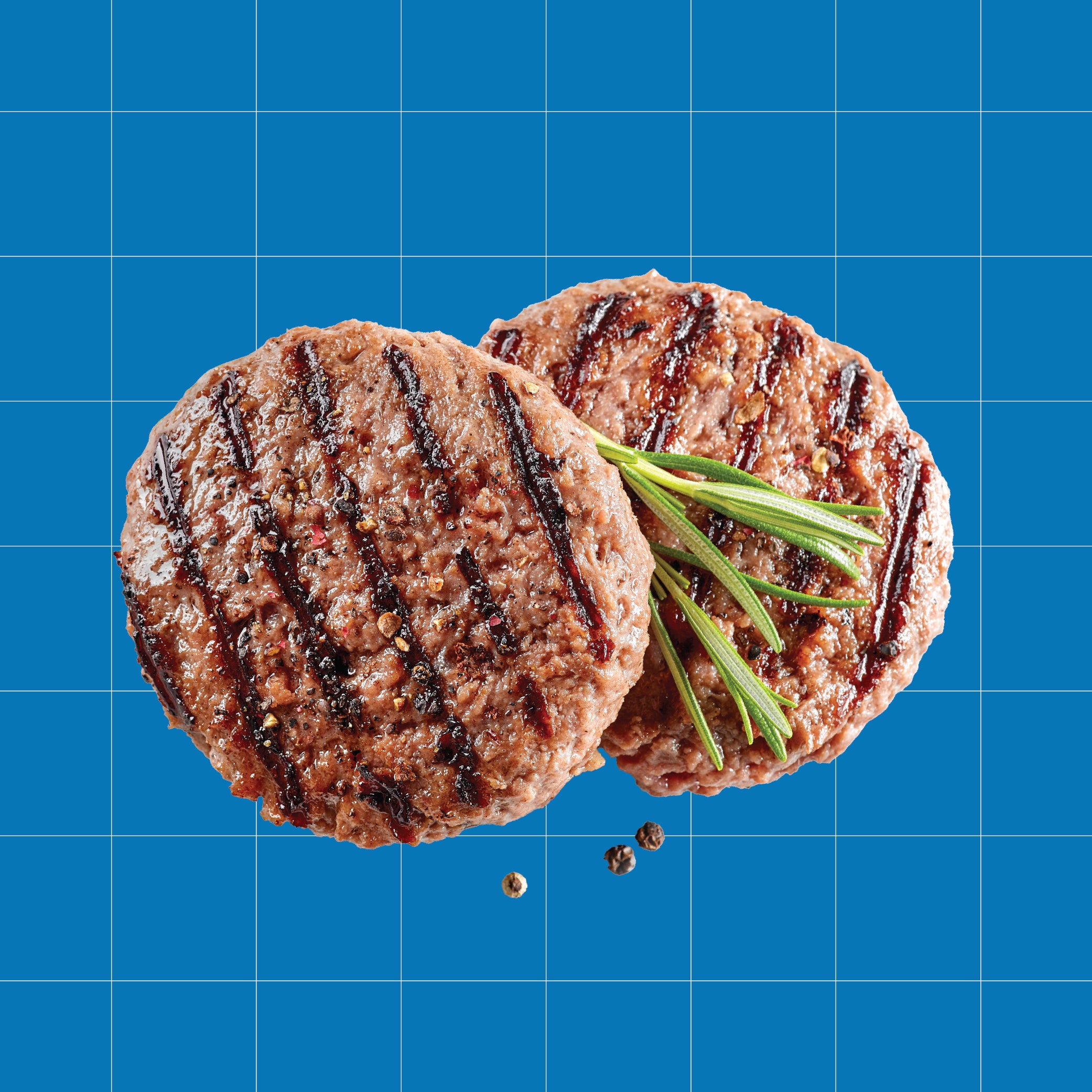 حطي برجر نقي الجاهز وسيبيه ٣–٤ دقايق لكل جنب لحد ما يتحمّر ويتقفل كويس.